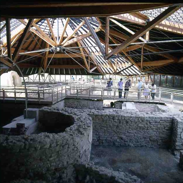 Heute befindet sich die Ruine unter einer imposanten Zeltdachkonstruktion und ist über begehbare Stege zu bestaunen. Die modernen Ergänzungen sowie ein graphisches Leitsystem veranschaulichen die Ausstattung und Nutzungsweise der Bade-und Wirtschaftsräume. Anhand von Grundrissen und Rekonstruktionen werden die verschiedenen Bauphasen der Thermen erläutert.