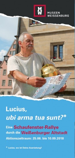 Die Schaufensterallye führt die Teilnehmer zu 21 Geschäften in der Weißenburger Altstadt. Wer alle Gegenstände gefunden hat, den erwartet im RömerMuseum ein kleines Dankeschön von Lucius! Mit der richtig beantworteten Zusatzfrage winkt jedem Kind ein freier Eintritt in das RömerMuseum!