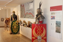 Das didaktische Konzept umfasst moderne Medien wie Film- und Audiostationen, Nachbildungen römischer Alltagsgegenstände dürfen befühlt werden. Neben historischen Aspekten römischen Lebens in der Region und am Limes, ist die Ausrüstung des römischen Militärs zentraler Aspekt der Ausstellung. Zwei Standfiguren - ein Reitersoldat und ein Legionär - zeigen anschaulich wie unterschiedlich die Soldaten ausgerüstet waren. Die Repliken römischer Helme führen die Veränderungen im Laufe der Jahrhunderte vor Augen.