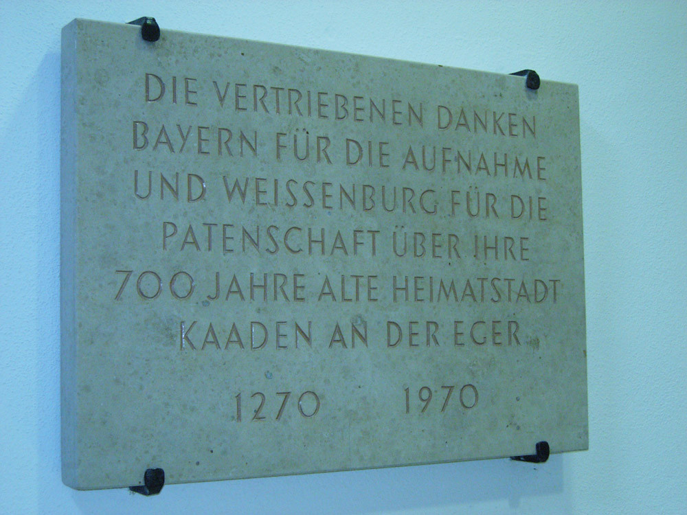 Mit dem Titel „Ankunft und Integration der Heimatvertriebenen in Weißenburg“ wurde 2005 eine Dauerausstellung als Abteilung des ReichsstadtMuseums im 1. Stock des Hauses Pfarrgasse 4 (Haus Kaaden) eingerichtet. Die Ausstellung erzählt  die Geschichte der Bewohner der ehemaligen sudetendeutschen Stadt Kaaden an der Eger im Kontext von Flucht und Vertreibung der Deutschen in Mittel- und Osteuropa, während und als Folge des 2. Weltkrieges. Ihre Unterbringung im noch bis 1953 bestehenden Flüchtlingslager auf der Festung Wülzburg sowie die Integration in Weißenburg sind u.a. Gegenstand der Darstellung.